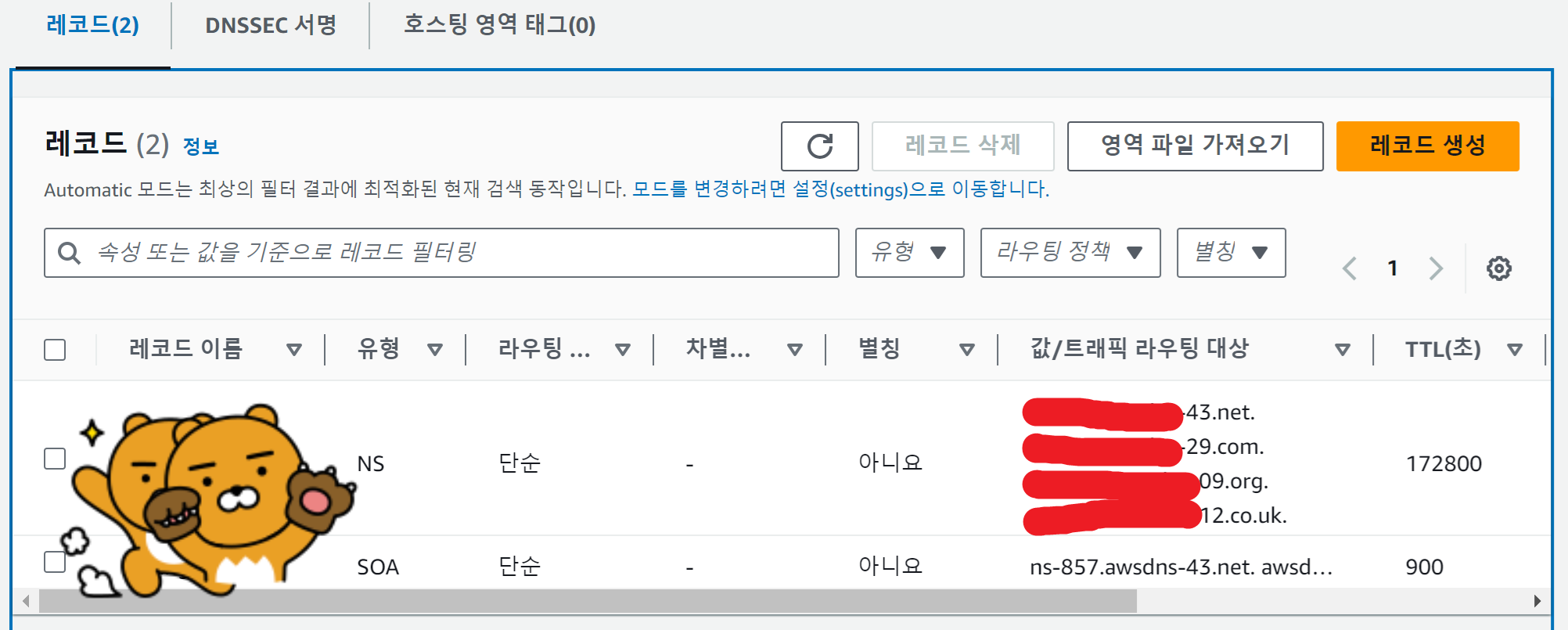 또한 도메인을 외부 사이트인 가비아에서 구매했으므로 가비아의 네임 서버도 NS 레코드의 라우팅 대상과 똑같이 설정하겠습니다.