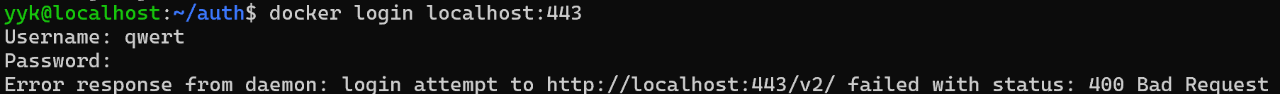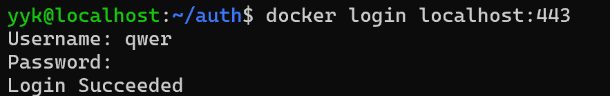 이제 localhost:443 레지스트리에 로그인하겠습니다.