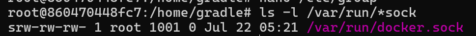 dminus251/jenkins-docker-agent:latest 컨테이너에 들어가 확인해보니 파일의 그룹명이 1001로 나와있습니다.