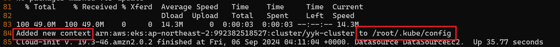 여기서 주의할 점은 워커 노드에 ssh 연결을 하고, /var/log/cloud-init-output.log 파일을 보면 다음과 같은 내용이 있습니다.