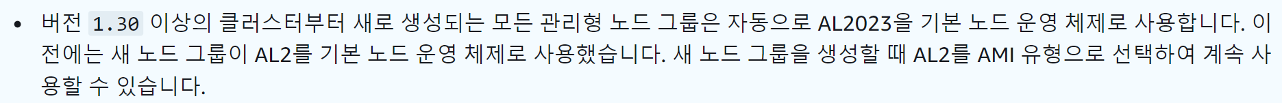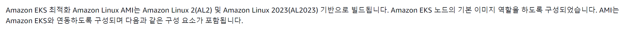 하지만 AWS의 최적화된 Amazon Linux AMI를 사용한 노드 생성 문서에서는 다음과 같이 설명합니다.