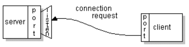 클라이언트는 호스트 이름(IP address)과 포트 번호를 알고 있습니다. 이 두가지 정보를 이용해 클라이언트는 서버에 연결을 시도합니다.
