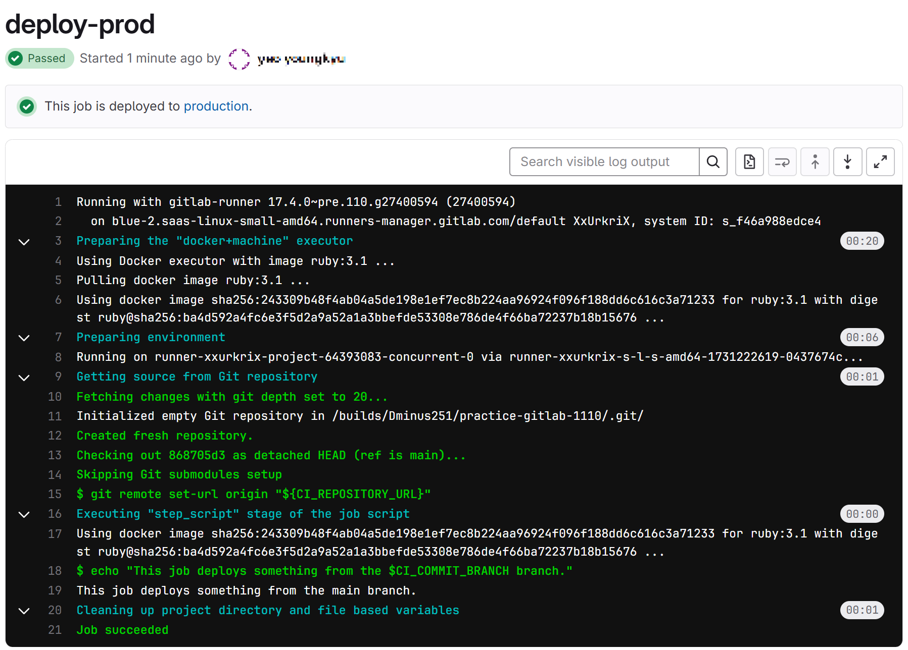 여러분은 성공적으로 GitLab에서 첫 CI/CD 파이프라인을 생성했습니다. 축하합니다!