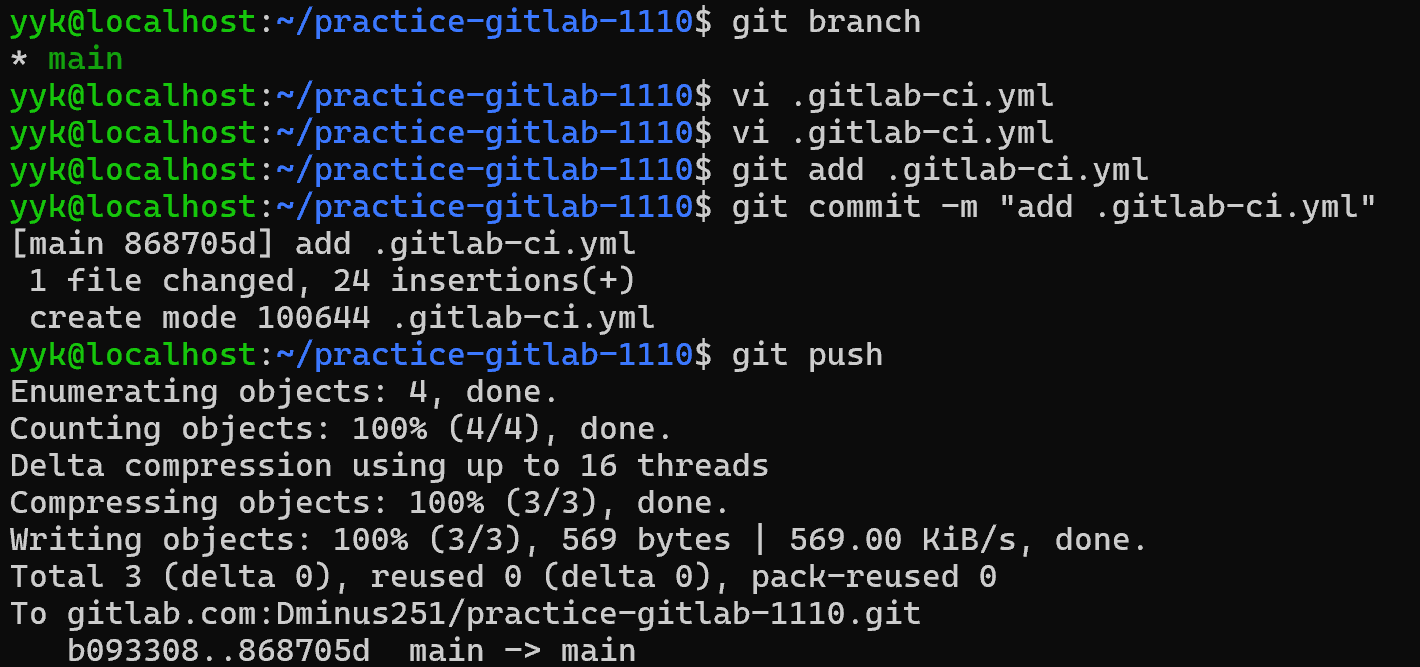 이제 .gitlab-ci.yaml 파일을 생성합니다. 이 파일은 YAML 형식을 따르며, GitLab CI/CD 명령을 적습니다.