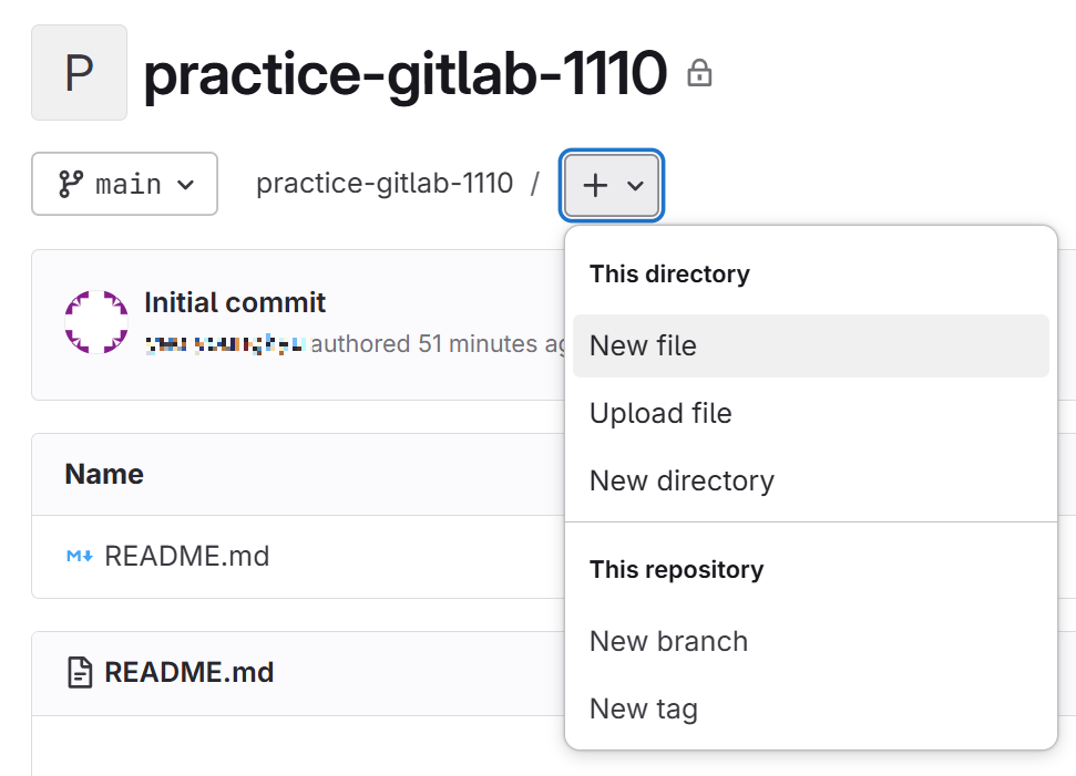콘솔에서 main 브랜치의 + 버튼을 눌러 New file을 선택합니다.