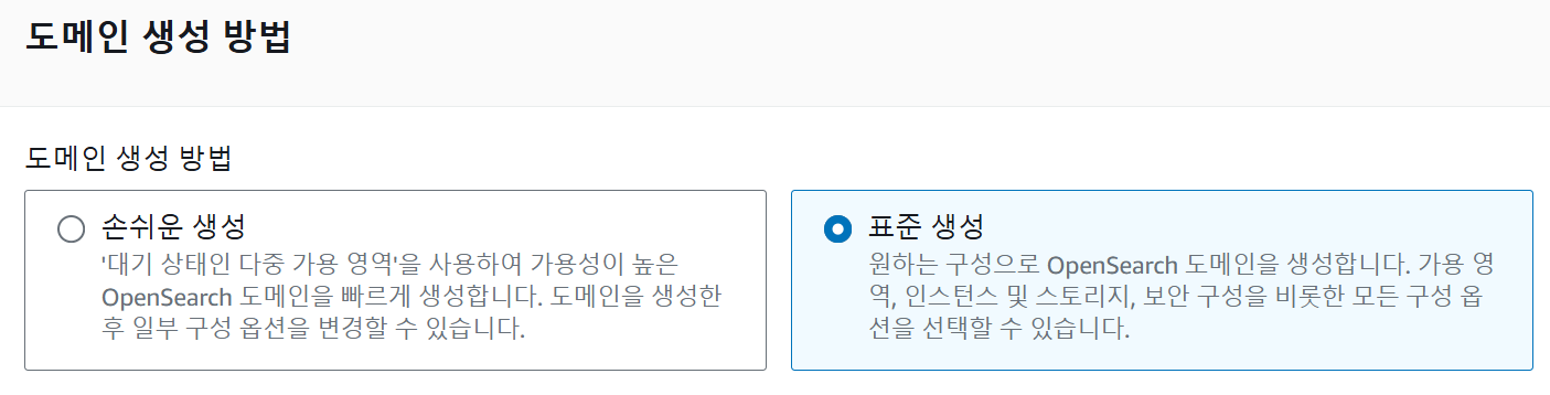 인스턴스 유형: t3.small.search (프리 티어에서만 사용 가능)