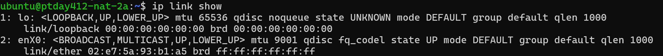 우선 ip link show 명령으로 인스턴스의 네트워크 인터페이스를 확인합니다.