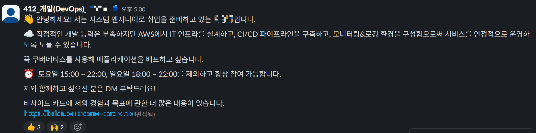 주업무가 개발보단 운영이 더 가까운 저의 포지션은 사이드 프로젝트에서 환영받지 못 했습니다.